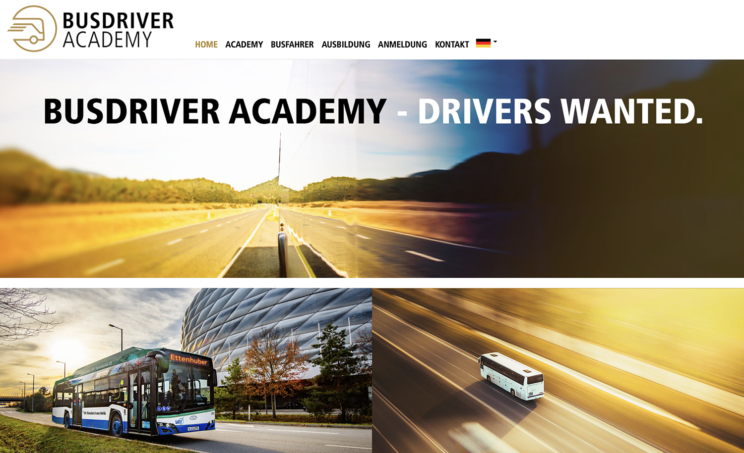 Die neue BUSDRIVER ACADEMY steht für Zukunft, Ausbildung und Mobilität – und genau das spiegelt auch das Webdesign wider. Eine klare Struktur, moderne Typografie und eine benutzerfreundliche Navigation schaffen eine Website, die sowohl informiert als auch begeistert. Das Design verbindet Funktionalität mit emotionaler Ansprache: starke Bilder, klare Botschaften und ein dynamisches Layout machen die Marke digital erlebbar. So wird die Mission der Academy – mehr Menschen für den Beruf des Busfahrers zu gewinnen – sichtbar und spürbar. Creative Consulting Marketing – Webdesign, Markenkommunikation & Digitalstrategie aus München.