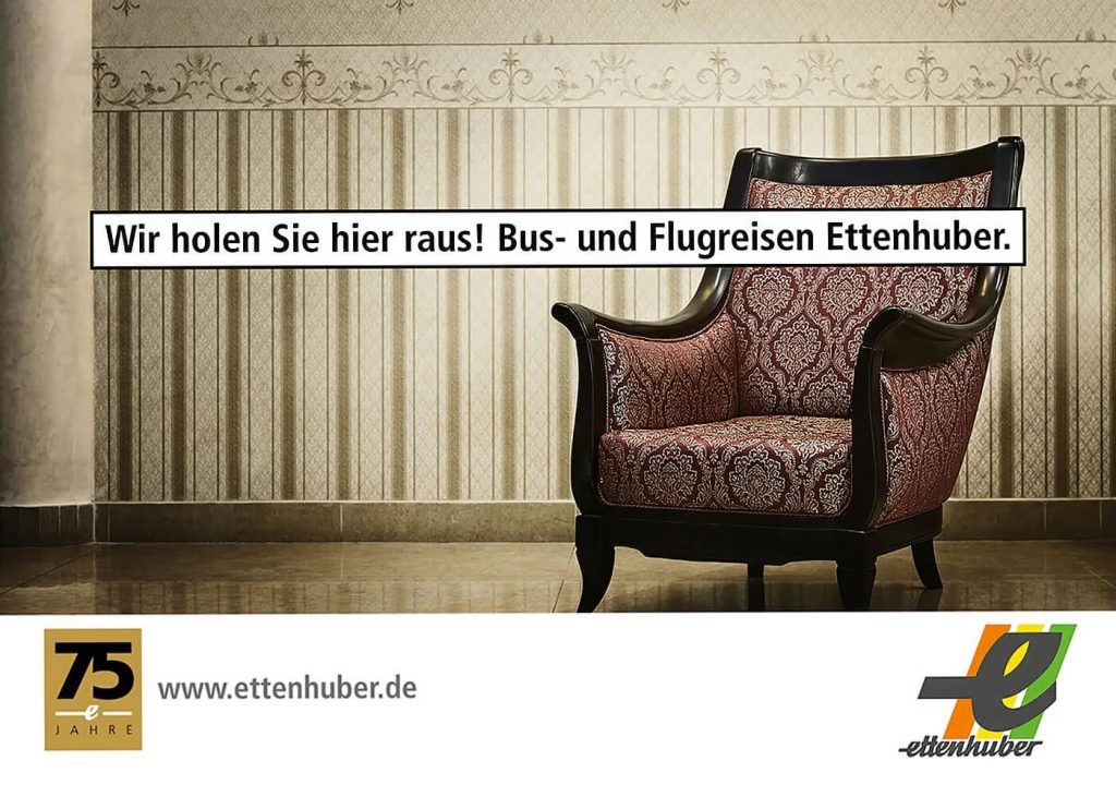 Plakat-Kampagne für Ettenhuber Busreisen- Wir holen Sie hier raus.